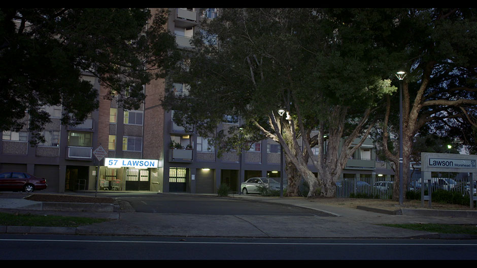 Resting at times on Redfern oval, various vantages surrounding 57 Lawson Street itself and the interiors of the towers, in addition to the tenants facing relocation from their long-standing homes, a discussion between a social worker and one particular occupant towards the end of the film, observed unobtrusively by Ferris, has a particularly jarring impact.