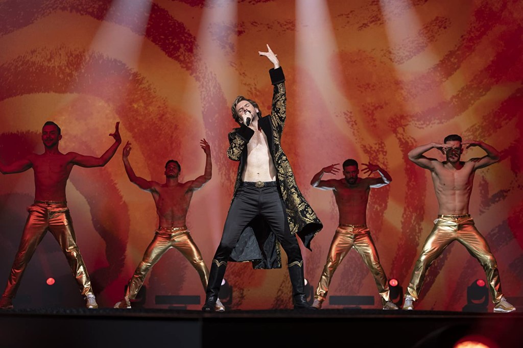 Lovingly landing jabs on the annual extravaganza, infamous for its nondescript, heavily generic slogans, the tagline ‘Perfect Harmony’ for the in-film comp shows that we’re dealing with real fans here, as does moreover the exclamation, as to why there are no cars on the road, that everyone’s “at home, watching Eurovision.” The film too acknowledges the constant push for and joy when singers indeed sing in Indigenous languages or emphatically about wherever they’ve ventured from with several seemingly throwaway gags, including a great one centring on whales, happily coming full circle.
